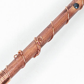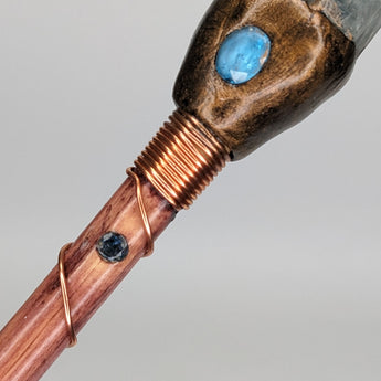 Enhance your energy and clarity with this powerful Ascension Throat Chakra Wand. Handcrafted with personally sourced tree branches and beautiful pure copper wire, it's accented with Aquamarine and Topaz crystals to unlock your inner voice and emotions. Experience a deeper connection with your emotions today!