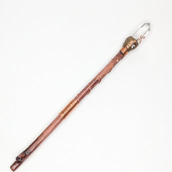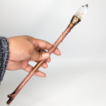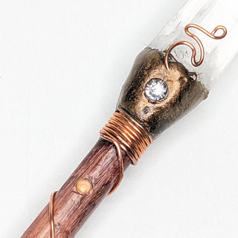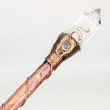This stunning Ascension Clear Quartz Wand is crafted from personally sourced tree branches and copper wire, and finished with a Clear quartz point, Cubic Zirconia and Opal inlays. Get yours now and elevate your spiritual practice to the next level!
