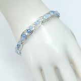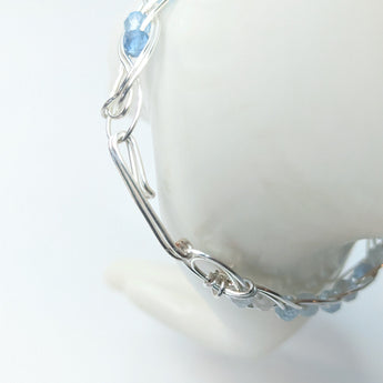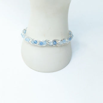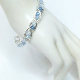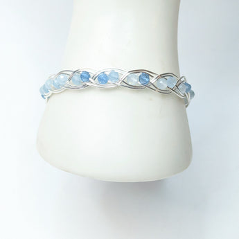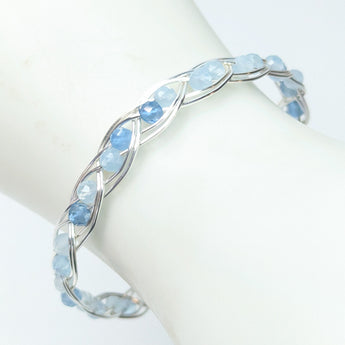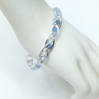 Handmade Aquamarine & Silver Plated Copper wire wrapped gemstone bracelet. A beautiful double gem weave around the entire bracelet.