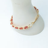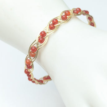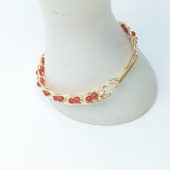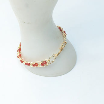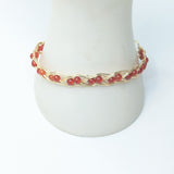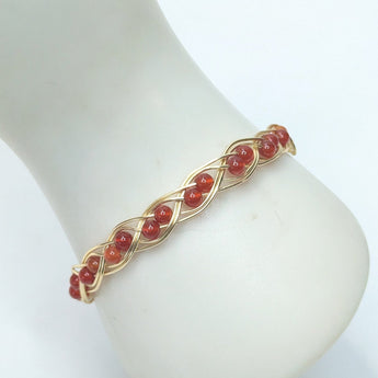 Handmade Carnelian & Gold Plated Copper wire wrapped gemstone bracelet. A beautiful double gem weave around the entire bracelet.