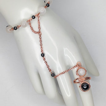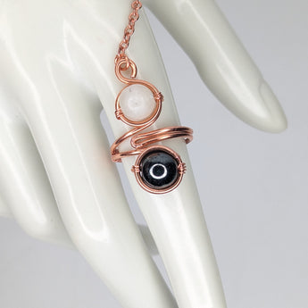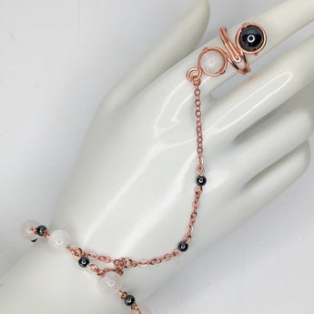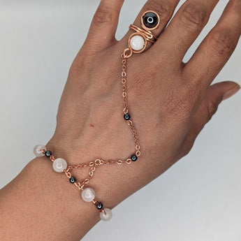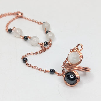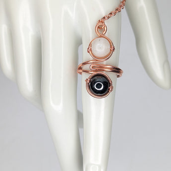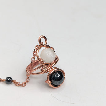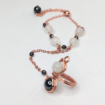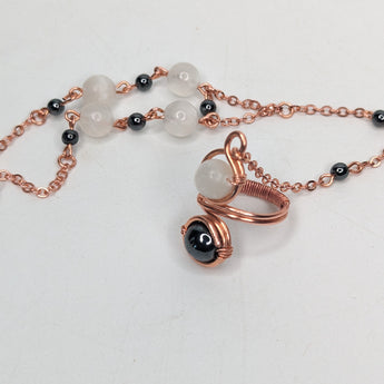 Experience the healing powers of Hematite and Selenite with our Linked Ring and Bracelet Combo. Handmade with sturdy 16 gauge wire, the adjustable bracelet and unique ring design allow for a comfortable fit. Unleash the power of these crystals and promote balance and grounding in your daily life.