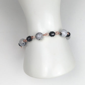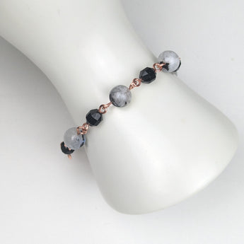 Rainbow Moonstone and Black Tourmaline Copper pendant