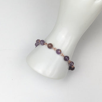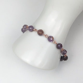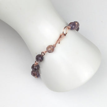 Discover the harmonious blend of nature's beauty with our Super 7 Garden Amethyst Copper Bracelet. Handcrafted with 8mm beads of Super 7, also known as Melody Stone, each bracelet showcases a unique combination of amethyst, clear quartz, smoky quartz, rutile, goethite, lepidocrocite, and cacoxenite. These powerful crystals are believed to synergize their healing energies, making this bracelet not only a stylish accessory but also a source of positive vibrations.