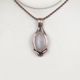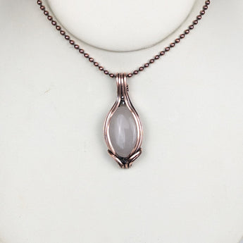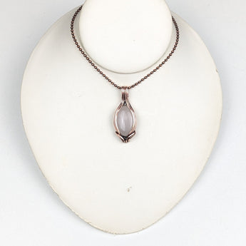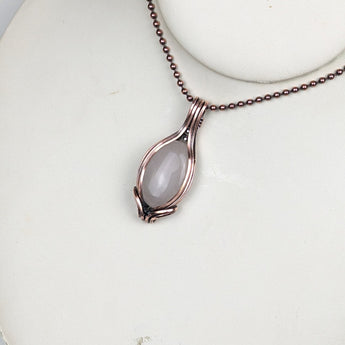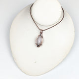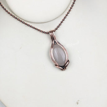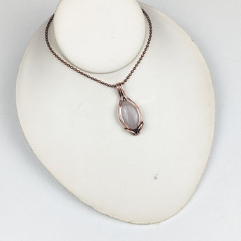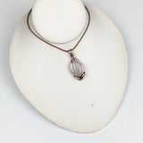 This handmade Rose Quartz pendant, wrapped with copper wire, radiates love and compassion. Known as the "Stone of Unconditional Love," Rose Quartz opens the heart chakra, promoting deep emotional healing and self-love. It encourages forgiveness, harmony, and peaceful relationships, while also soothing emotional wounds. The gentle energy of Rose Quartz, paired with the natural conductivity of copper, enhances its ability to amplify love and tranquility, making this pendant a perfect tool for attracting positivity and nurturing deep connections, both with yourself and others. A beautiful, spiritual piece for those seeking heart-centered balance and healing.