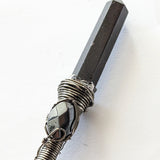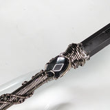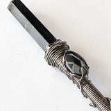 Defend yourself from electromagnetic radiation with the EMF Protection Wand! Crafted with a black Tourmaline point, Hematite, Pyrite, and Shungite beads, this handmade copper-wire wrapped wand is your gateway to a protected life. Unlock its power now!