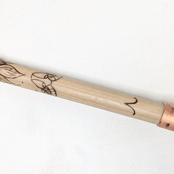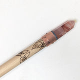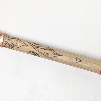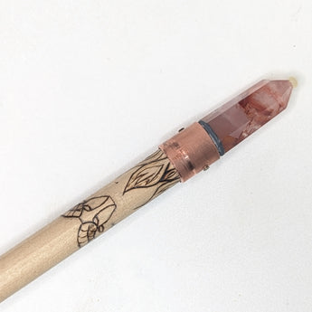 This design features a Aries themed wood burned design. Design is accented with an 8mm Onyx and a Fire quartz Point