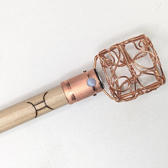 This Smudge wand holder is lovingly crafted with a solid wood core, 100% real copper, and natural crystals. Each piece is handmade to order for a truly unique product.