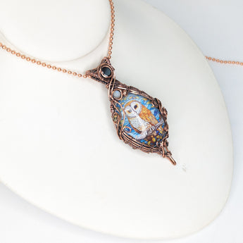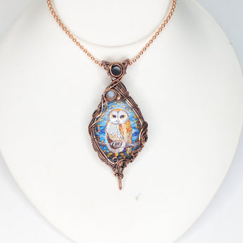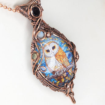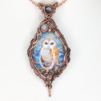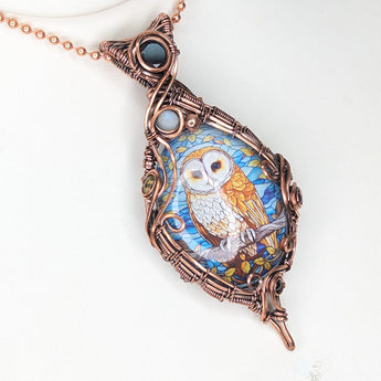 Handmade and wire wrapped, this Autumn Owl Crystal Amulet Pendant is a unique and stunning piece of jewelry. Its antiqued polish and temporary tarnish resistant sealer ensure long-lasting beauty. A perfect accessory for any outfit, it will add charm and elegance to your style.