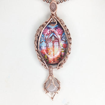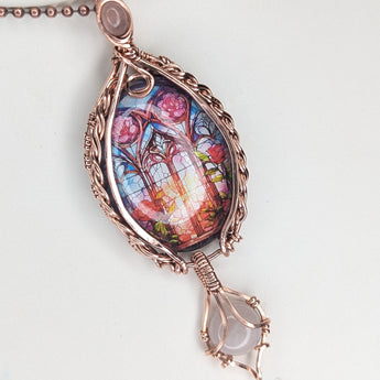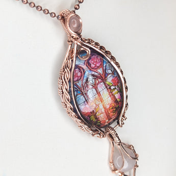 Elevate your style with our handmade Braided Rose garden Pendant. Expertly crafted with braided copper wire, this pendant radiates uniqueness. Adorned with Rose Quartz Accents