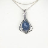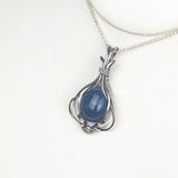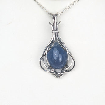 This exquisite handmade Blue Fluorite pendant showcases a beautiful, translucent blue gemstone wrapped delicately in sterling silver wire. Known for its calming and healing properties, Blue Fluorite promotes mental clarity and communication. The sterling silver setting adds a refined touch, making this pendant a perfect piece to enhance both your spiritual energy and your style.