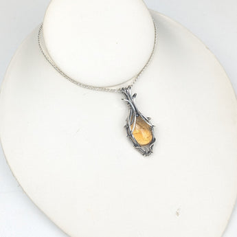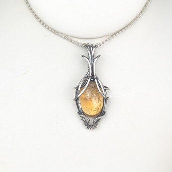 This stunning handmade Citrine pendant features a radiant, golden-yellow Citrine gemstone, beautifully wrapped in high-quality sterling silver wire. Its warm, vibrant energy promotes positivity, abundance, and joy, while the sterling silver adds a touch of elegance and sophistication. A perfect accessory for those seeking to enhance their personal energy and style.