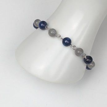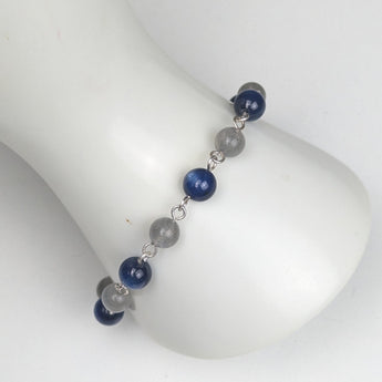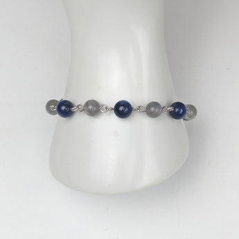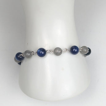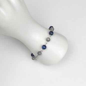 Kyanite and Labradorite Handlinked Sterling Silver Bracelet