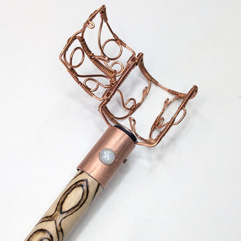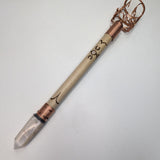 This Smudge wand holder is lovingly crafted with a solid wood core, 100% real copper, and natural crystals. Each piece is handmade to order for a truly unique product.