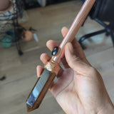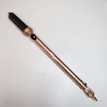 This Palo Santo Wand holder is lovingly crafted with a solid wood core, 100% real copper, and natural crystals. Each piece is handmade to order for a truly unique product.