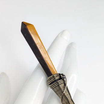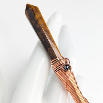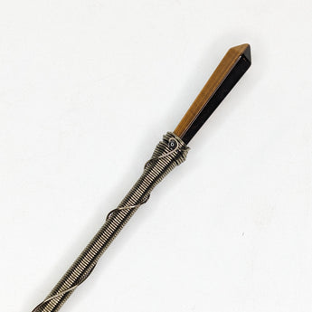 Experience the powerful healing energy of Tigers Eye with our handcrafted energy conduit wands. Each wand is made with natural Tigers Eye and either copper or plated copper, perfect for rebalancing and realigning energies. Let these wands sweep away negative blocks and bring abundance into your life.