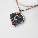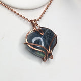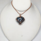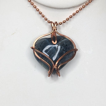 This stunning flashy Labradorite puffy heart is wire-wrapped in pure copper with a minimalist design that lets the stone’s captivating iridescence shine. The heart’s vibrant flashes of blue, gold, and green are beautifully highlighted by the sleek copper, creating a simple yet striking piece that radiates both elegance and magical energy.