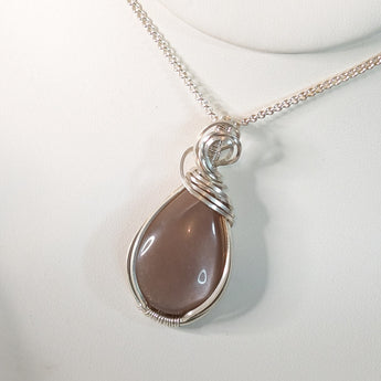 Chocolate Moonstone Tear Shaped Argentium Silver Pendant