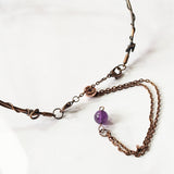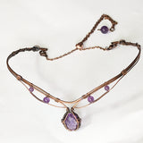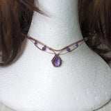 Enhance your look with this stunning 6ct Amethyst choker in copper! Handcrafted with quality materials, this choker features a beautiful Amethyst gemstone in the center, set in copper wire wrap that creates a beautiful and eye-catching design. The copper wire wrap is intricately detailed and flows gracefully around the gemstone, giving it an elegant feel. The choker fits comfortably around the neck and is lightweight enough to be worn all day. You'll be sure to make a bold statement with this unique and stylish piece of jewelry!