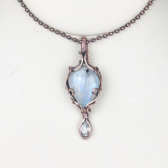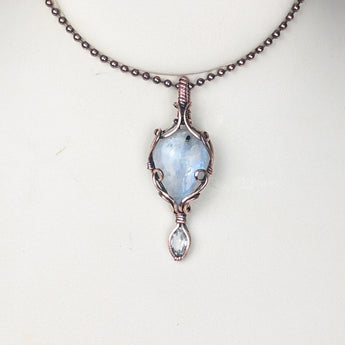 Rainbow Moonstone And White Topaz Ethereal Pendant