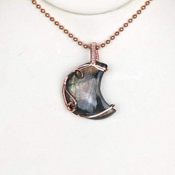 Handmade Labradorite Moon wrapped in Copper