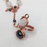 Experience the healing powers of Hematite and Selenite with our Linked Ring and Bracelet Combo. Handmade with sturdy 16 gauge wire, the adjustable bracelet and unique ring design allow for a comfortable fit. Unleash the power of these crystals and promote balance and grounding in your daily life.