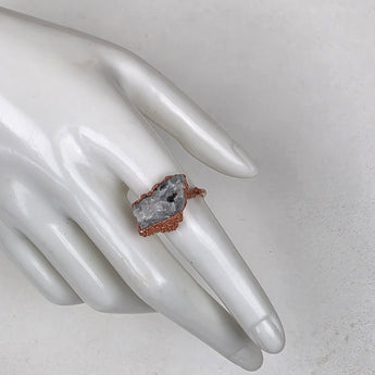 Mounted on a handcrafted copper ring band, sealed to help reduce oxidation and preserve finish